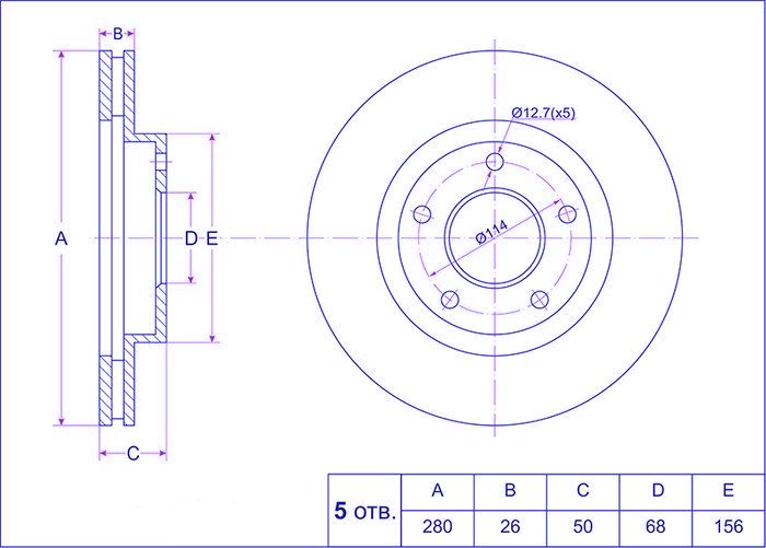 Диск тормозной /передний /TI-GUAR для NISSAN Tino QG18, SR20, V10, Cefiro VQ25DD A33, Skyline RB25DE R34; 280/28мм; TG-40206-2Y505 RN1180 402064U101 402064U103